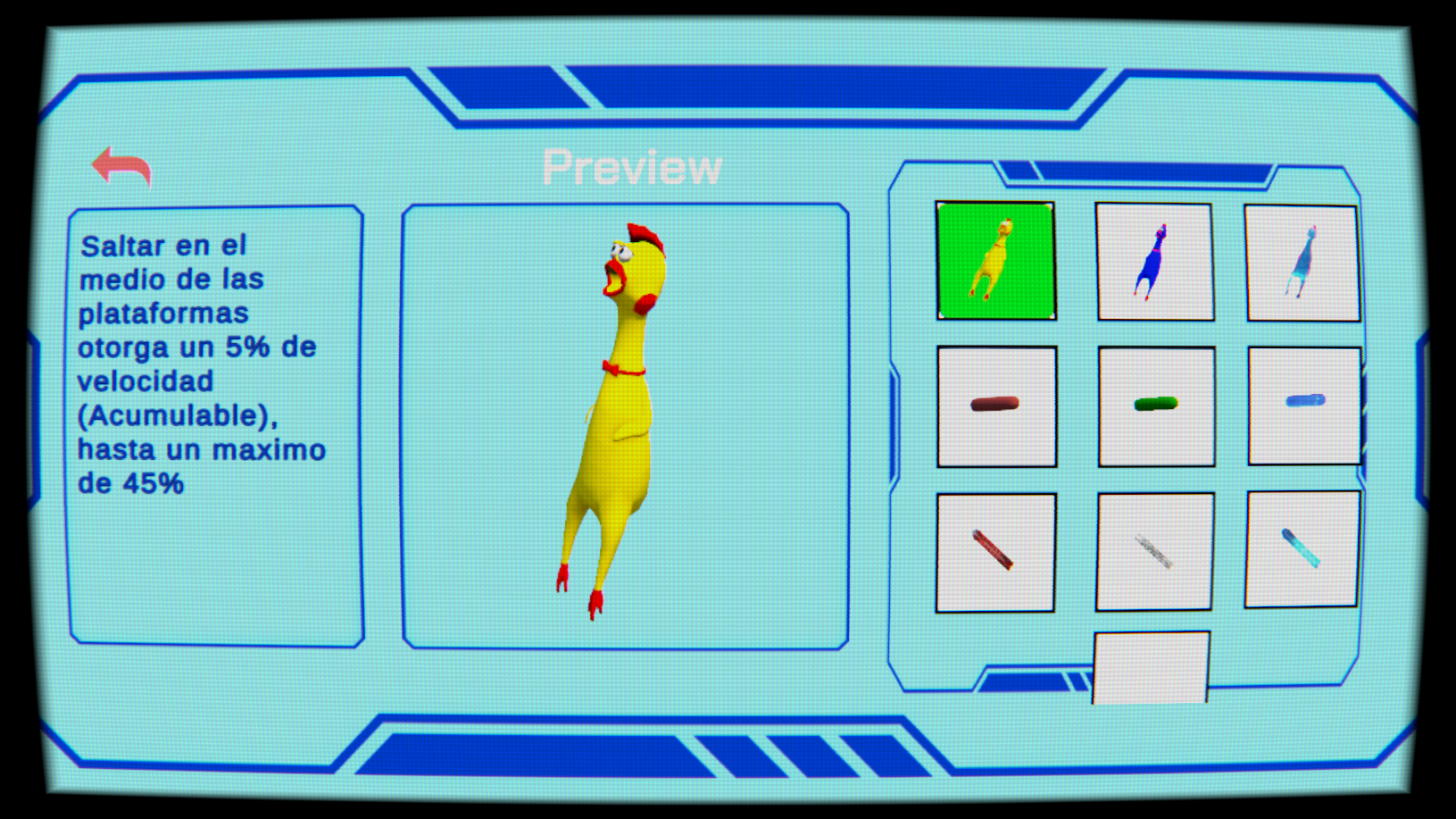 Contamos con 9 skins en el juego, cada una nos dará un efecto único que harán nuestros niveles diferentes.